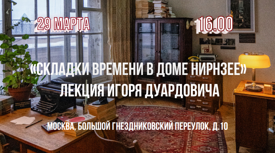 29 марта в 16.00 по адресу: Москва, Большой Гнездниковский переулок, д.10 состоится лекция Игоря Дуардовича «Складки времени в Доме Нирнзее».